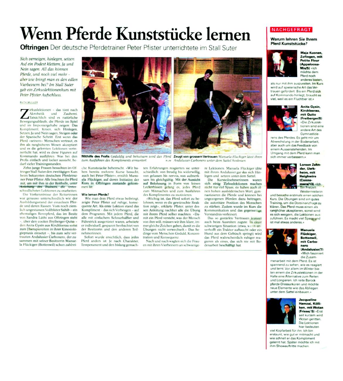 Wenn Pferde Kunststuecke lernen (Zofinger Tageblatt 21.05.04)